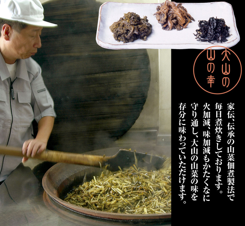 クリックで詰合せページ ご進物に最適です 御詰合せ どなたにも喜ばれる本物の味 送った方の気持ちが伝わる、 心のこもった味わいです。 クリックで五色揃えページ お好きな商品詰合せ 五色揃え 彩り良く詰合せ 五色のケースに彩り良くセット。 単品でも承ります。 クリックで山菜小袋ページ お徳用の個袋入り 山菜小袋 単品の袋入りです。 お好きな山菜をお好きなだけ。 ご家庭でお召し上がりになるには これがおすすめです。